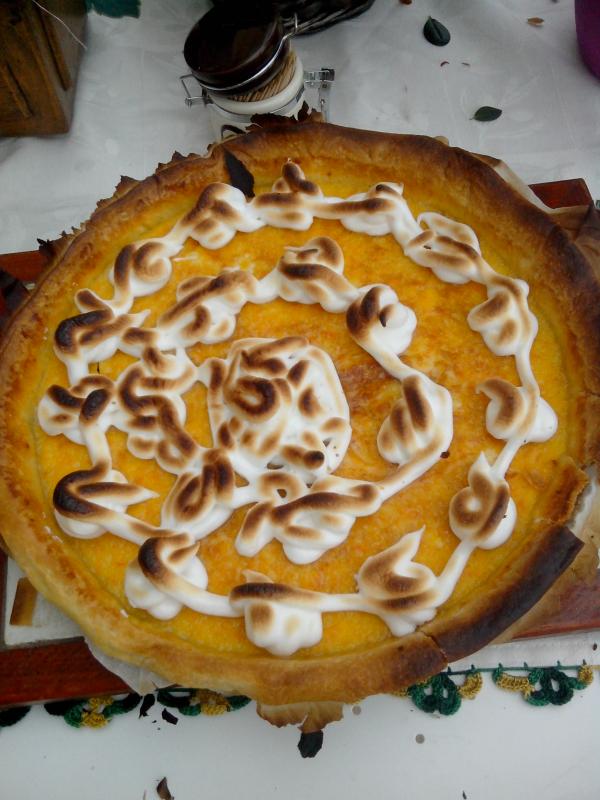 ingrédients :- pâte sablée Pour la garniture : - 6 clémentines bio (non traitées) - 3 oeufs - 100 g de sucre - 80 g de beurre fondu Pour la meringue: 2 blancs d'oeufs à température ambiante + 100 g de sucre glace Préchauffez le four à 190° C Étalez la pâte (sortie du frigo 15 minutes avant) sur 3 mm d'épaisseur et mettez-la dans un moule de 18 cm de diamètre Piquez le fond avec une fourchette et posez par-dessus un disque de papier sulfurisé recouvert de noyaux d'abricots ou de légumes secs Préparez la garniture et enfin le zeste des clémentines. Fouettez vigoureusement tous ces ingrédients. Sortez la tarte du four et versez-y cette préparation. Faites cuire de nouveau pendant 15 minutes.