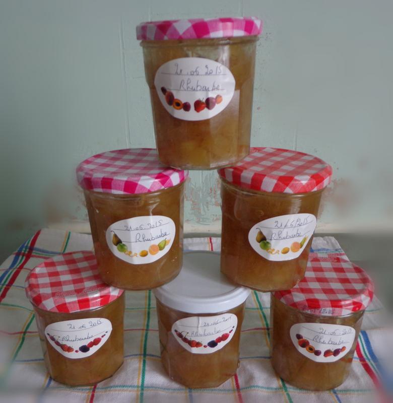 après l'abricot (cf ici) encore un peu de rhubarbe, tant qu'il y en a ! 1 bon kilo de fruits et 6 gentils petits pots !