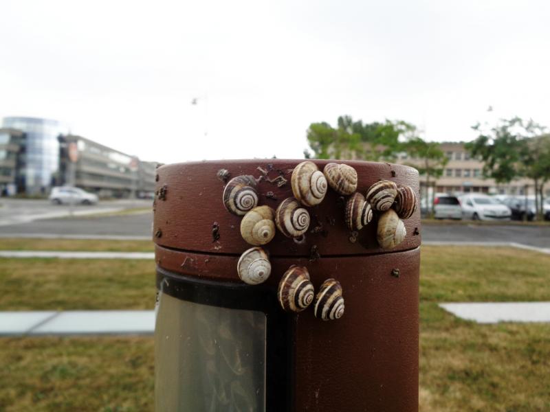 sur un poteau lumineux, nous avons assisté à la "conférence des escargots" ! sans doute la lumière et la chaleur les ont rassemblé tout en haut ...