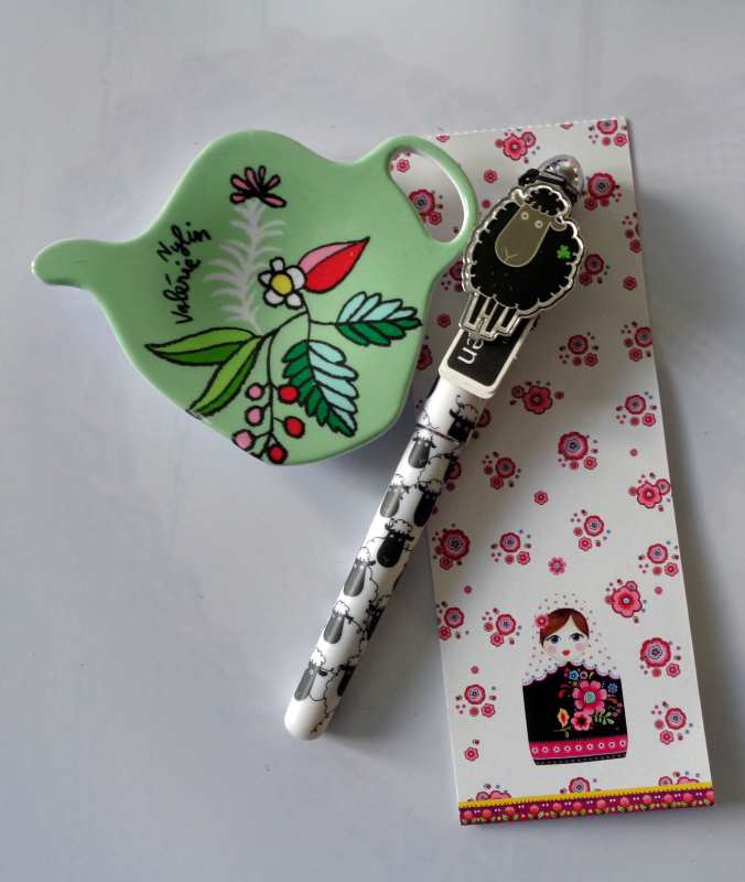 pour ce joli cadeau de Noël ! une jolie carte avec de bons voeux... un feutre "made in Irland" tellement mignon avec ces moutons et qui m'a déjà bien servi ! et puis ce joli "receveur de thé" qui lui aussi a déjà été utilisé chaque jour depuis qu'il est arrivé chez nous ! merci Fanfan et bonnes Fêtes de fin d'année ! gros bisous Françoise