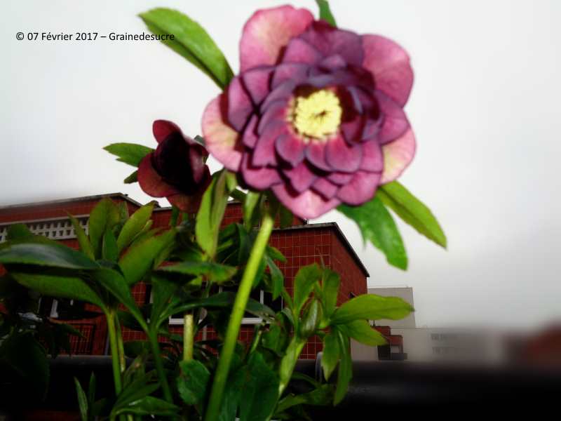 j'ai mis deux pieds d'hellébore double pourpre dans la balconnière pour avoir de la verdure pendant l'hiver. Elles commencent à fleurir pour nous annoncer le printemps ?