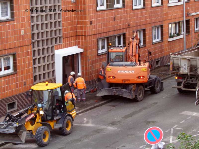 depuis hier les engins de travaux enlèvent l'ancien bitume des trottoirs...