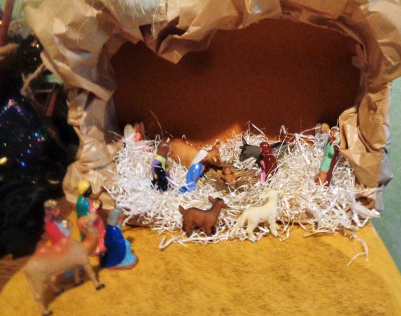 Alors, bricolage maison avec une boîte à chaussures, un peu de papier et de paille... un petit mouton et une petite chèvre en plus... et voilà !
