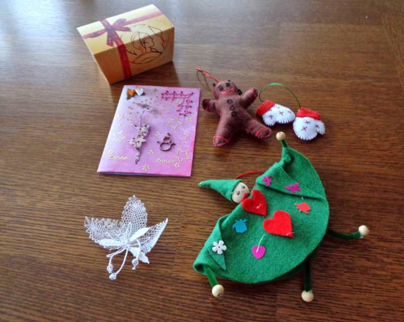 le travail délicat de la broche, que je porterai très prochainement et tout ces objets faits avec coeur. Merci aussi pour la jolie carte, j'aime l'idée de me promener dans les étoiles et le gentil mot...