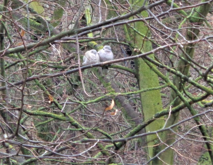 C'est bientôt la Saint Valentin et le mariage des pierrots. Pour le moment, ce couple de tourterelles se tient mutuellement chaud... Elles m'ont fait mal au coeur, je leur aurais bien prêter un petit coin plus chaud !...