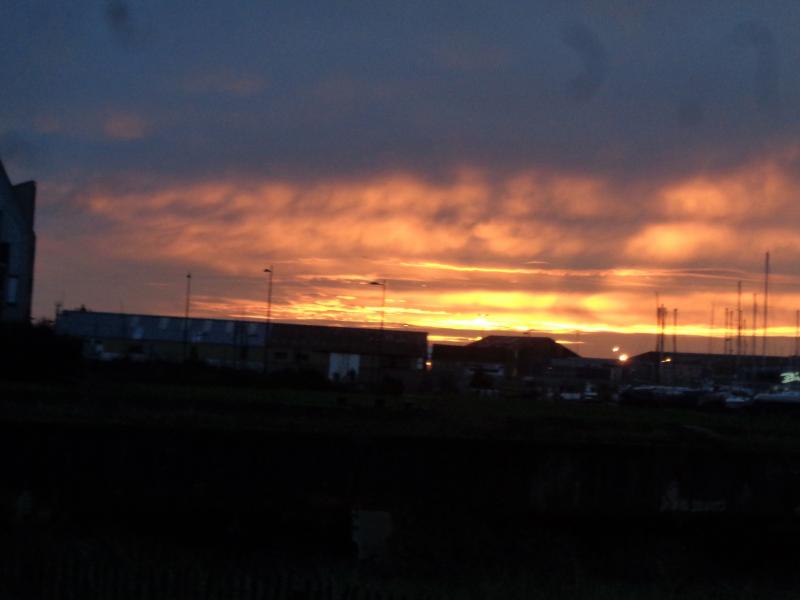 Le soir qui descend, un ciel nuageux et la torchère qui éclaire les nuages...