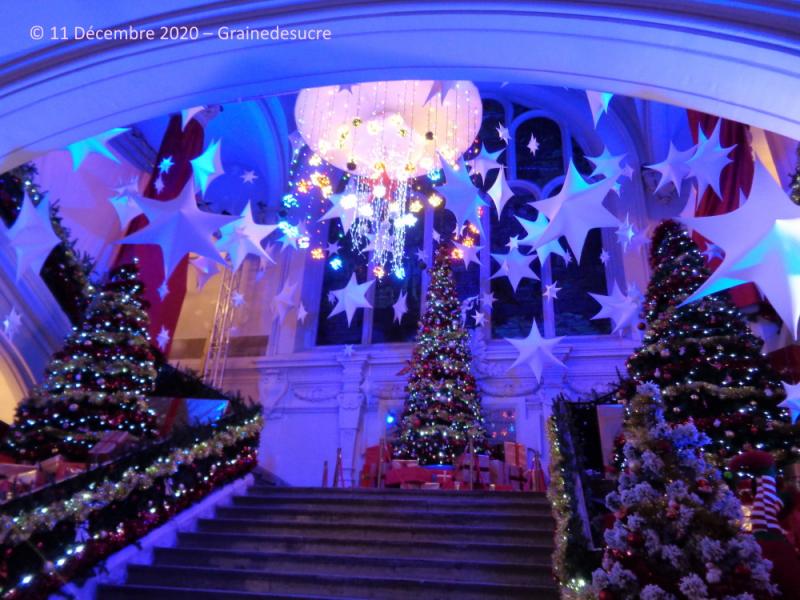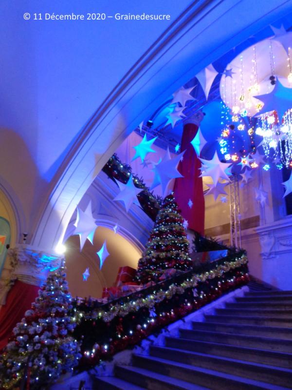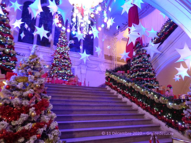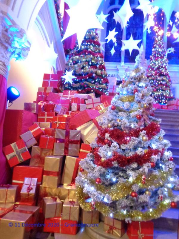 L'escalier monumental est encadré des paquets que le Père Noël doit emporter...