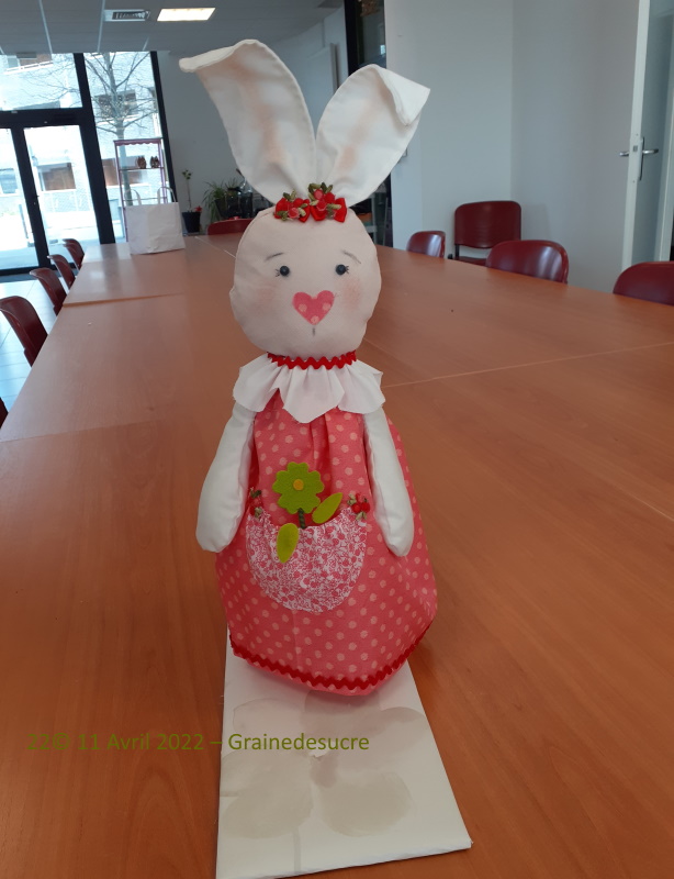 A l'atelier de Véronique : avec une petite bouteille d'eau, un peu de tissu, quelques accessoires et le tour est joué et bien joué ! Ce n'est pas moi qui l'ai faite mais j'ai pris la photo, j'ai la trouvé mignonne.