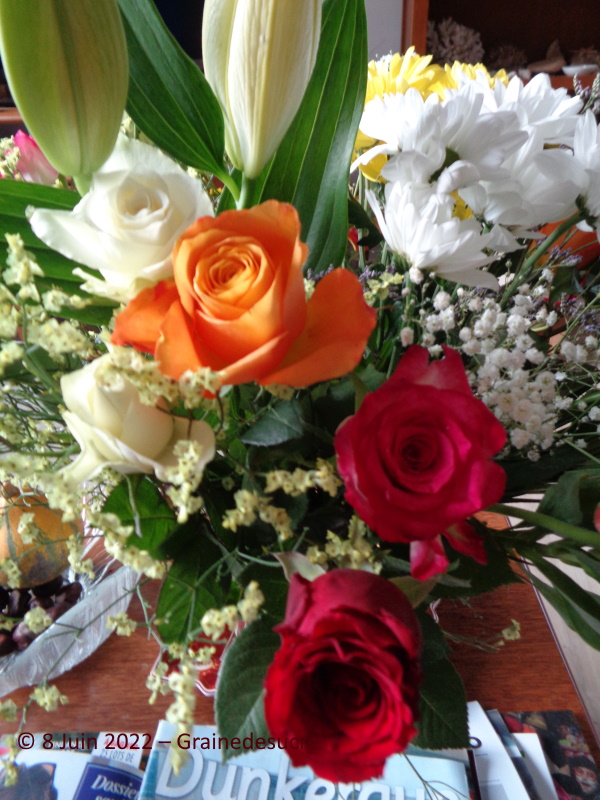 Lundi c'était mon anniversaire et j'ai été gâtée en fleurs, messages et coups de téléphone. C'est bien agréable même si on prend une année de plus hihihi !