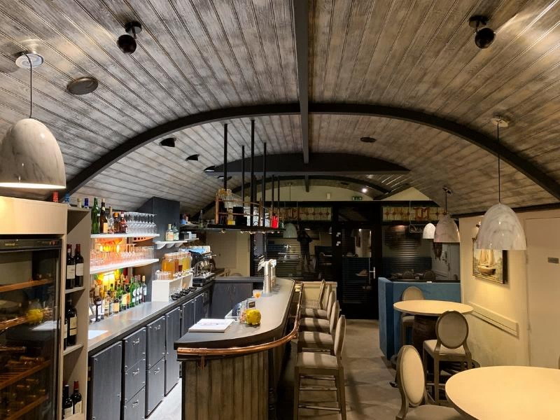 Le décor ressemble à une coque de bateau renversé. L'accueil est chaleureux et le menu varié