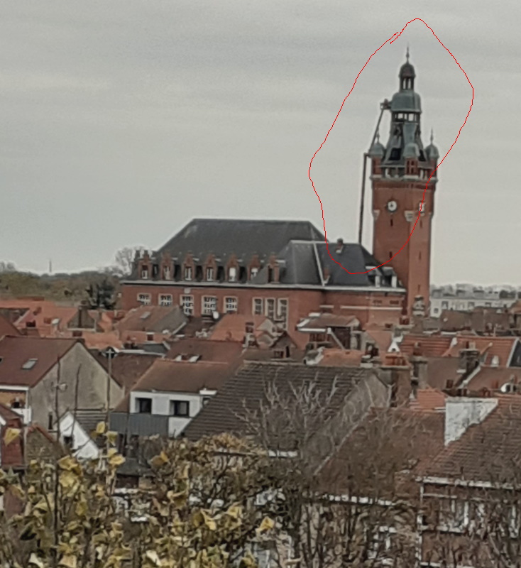 Suite au fort coup de vent, le clocheton du beffroi de la mairie de Rosendaël a subi quelques dommages.