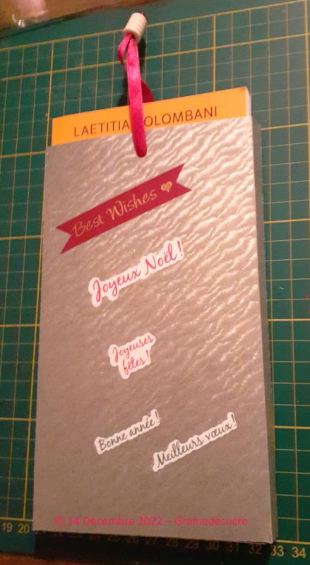 Ici c'était un livre, mais on peut y mettre des photos ou une plaque de chocolat et .... après c'est à vous d'imaginer ce que vous pouvez présenter de cette façon.