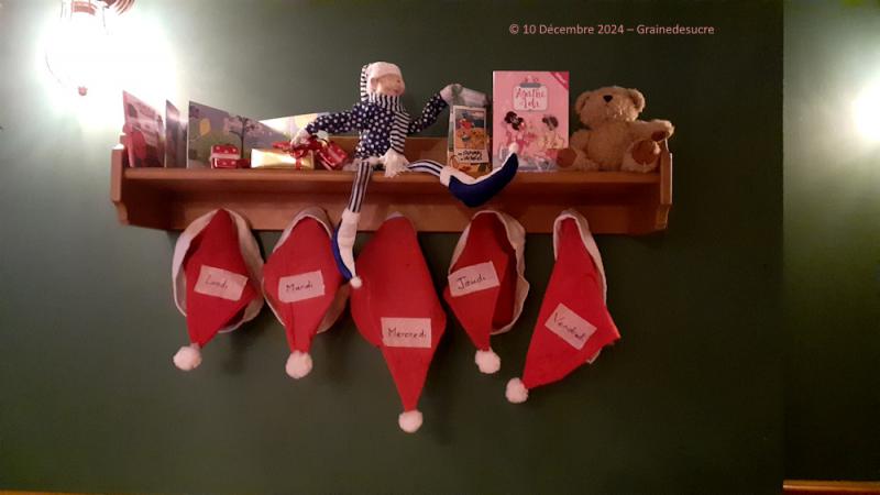 Dès que le Père Noël se réveille, le lutin lui raconte une histoire et hop ! il se rendort...