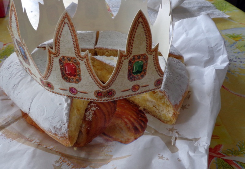 nous avons partagé en famille une excellente galette des Rois en pâte feuilletée garnie de frangipane à la pistache et d'une fine lamelle de compote de framboises un délice ! et ...j'ai eu la fève (Milou !)
