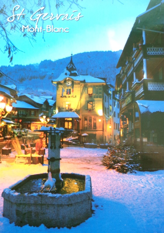 et hier soir eh une autre. La France cette fois, sous la neige c'est de saison, et de nuit également; Merci également à l'expéditrice de ce gentil message au dos de cette belle carte. Vous êtes très gentilles de penser à la blogeuse coincée au boulot ! ainsi je voyage avec vous !