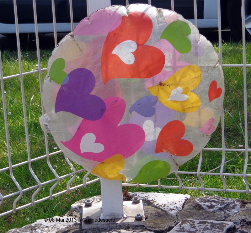 ce matin, après notre balade au port, nous avons rencontré ce pauvre ballon emprisonné par les grilles. Tout rempli de coeurs, nous n'avons pas eu le coeur de le laisser emprisonné et nous l'avons aidé à reprendre son envol ! vas distribuer tes petits coeurs de par le vaste monde petit ballon !