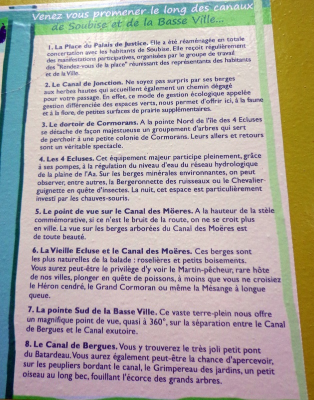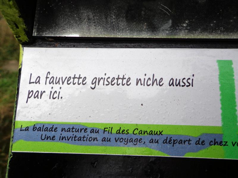 | je vous avais emmené au bord du canal (cliquez ici)  pour observer les oiseaux et j'ai continué la promenade...   avec la fauvette grisette que bien sûr je n'ai pas vue .... seulement dans la petite boîte, mais au moins je sais à quoi elle ressemble.   et puis j'ai lu le descriptif du parcours...   ils ont raison... nous sommes à deux pas du centre ville, entre la station d'épuration et le cimetière... le croiriez-vous ?