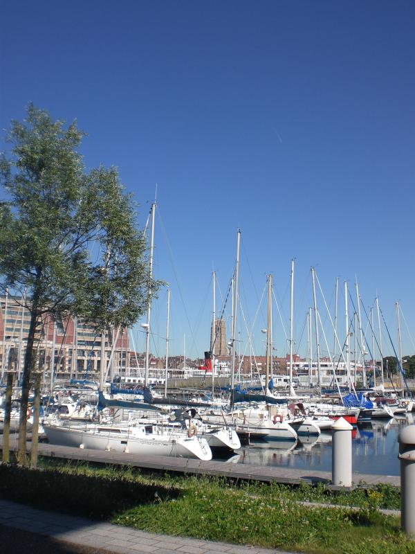 sur notre droite, le nouveau quartier Neptune sur le site des anciens chantiers navals, avec ses "gables" si particuliers....