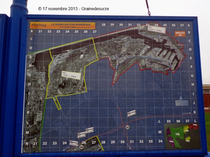 nous n'irons pas aujourd'hui jusqu'à l'écluse De Gaulle ni sur la digue du Break, nous serions de retour trop tard. Un regard sur le site Arcelor et les portiques qui chargent le minerai...et demi- tour ....