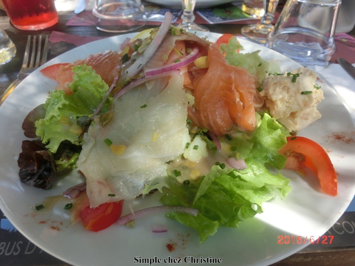 finalement notre menu, une belle salade accompagné de poisons frais et saumons fumés