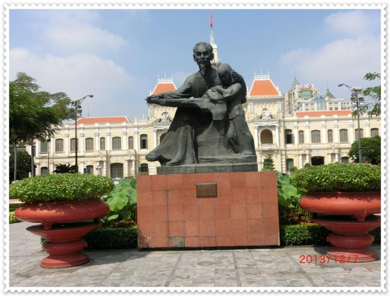 devant ce trouve un joli parc, la statue de Ho Chi Minh ou l'oncle Hô, militant communiste et homme d'état vietnamien, il est le fondateur de la république démocratique du Viet nam.