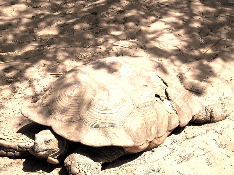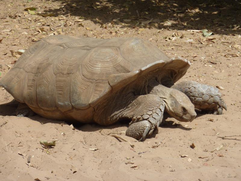 La sulcata qui est la plus grosse tortue d'afrique (elle peut atteindre jusqu'à 100 kg) est malheureusement menacée de disparition.