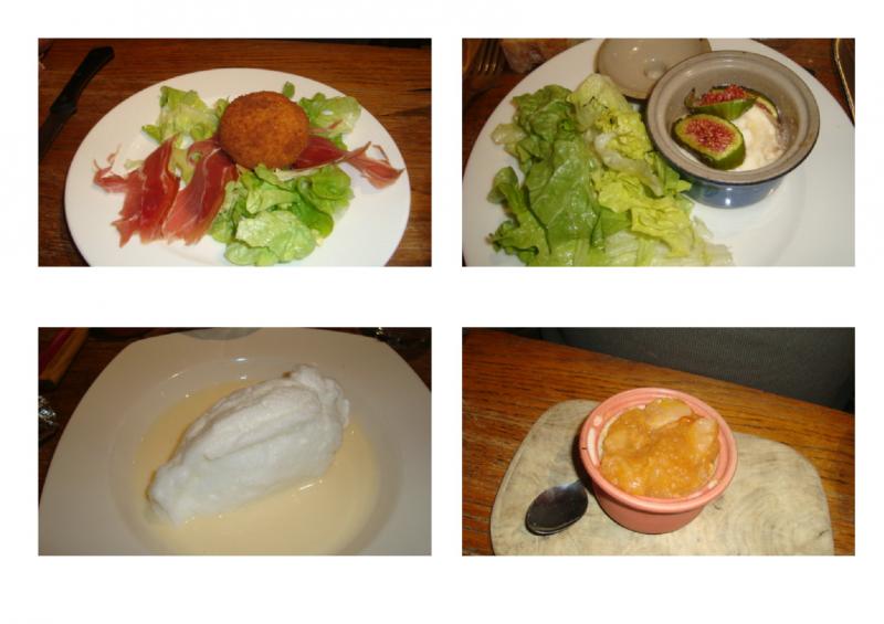 Une dégustation de recettes avec le chèvre chaud , crottin pané sur salade, jambon petite cocotte de chèvre frais miel et figue.