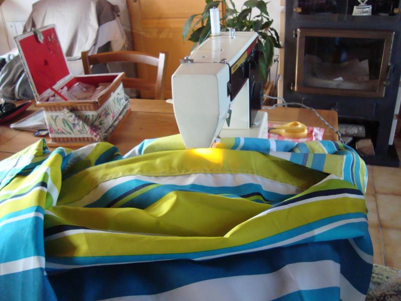 Je prépare les grosses chaleur, avec une bache neuve qui n'a jamais servie je tente de réaliser un store ou rideau extérieur pour les deux glaces de ma véranda..là ou le soleil se lève et l'été ça chauffe(je ne vais pas m'en plaindre bien au contraire).