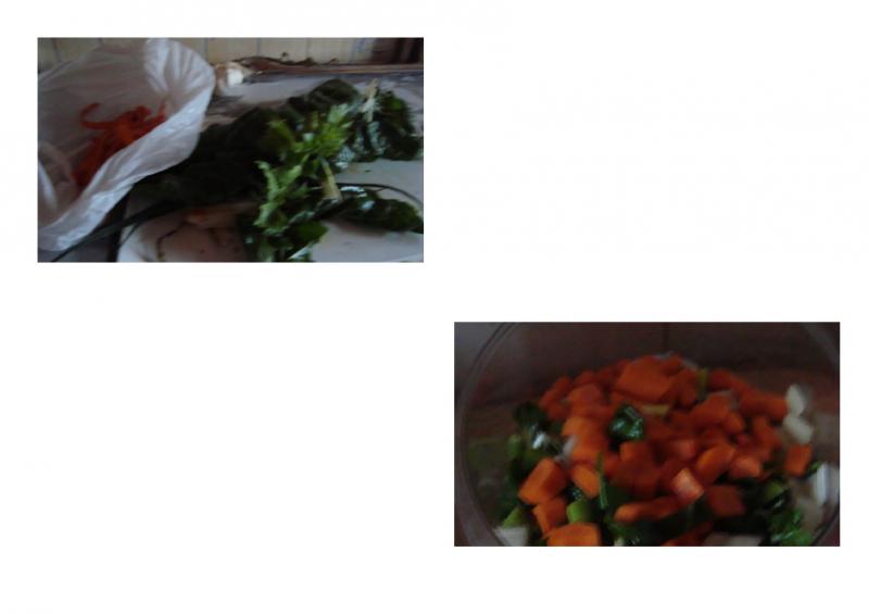 1 feuille de blettes et sa côte, carottes, poireaux 2 tout petit, côte de céleri.