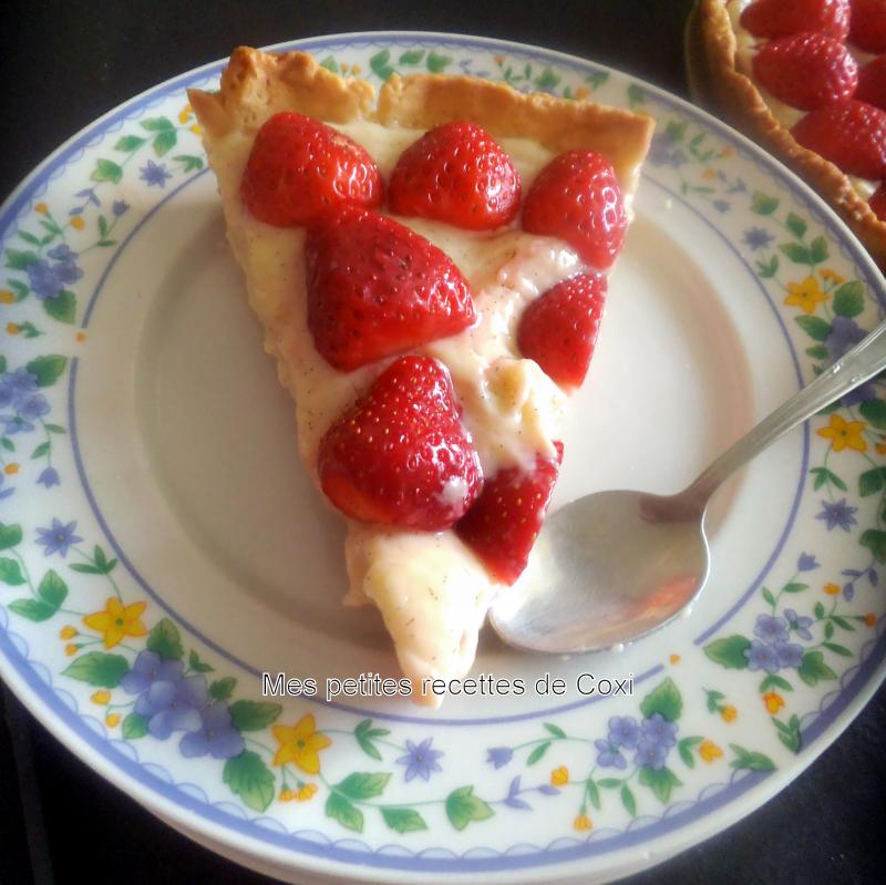Quand le fond de tarte est refroidi étaler dessus la crème pâtissière refroidie et déposer par dessus les fraises en rang serré