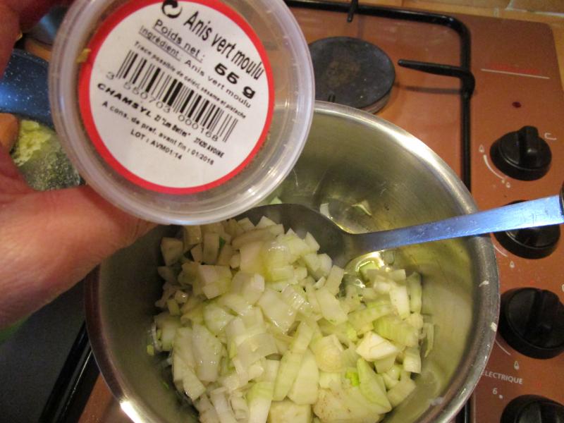 Crémeux de fenouil: couper le fenouil en petits morceaux avec une échalote, le faire confire à l'huile d'olive, le mixer finement avec 2 cuillères à S de crème fraîche et une pincée d'anis vert, assaisoner et déguster !