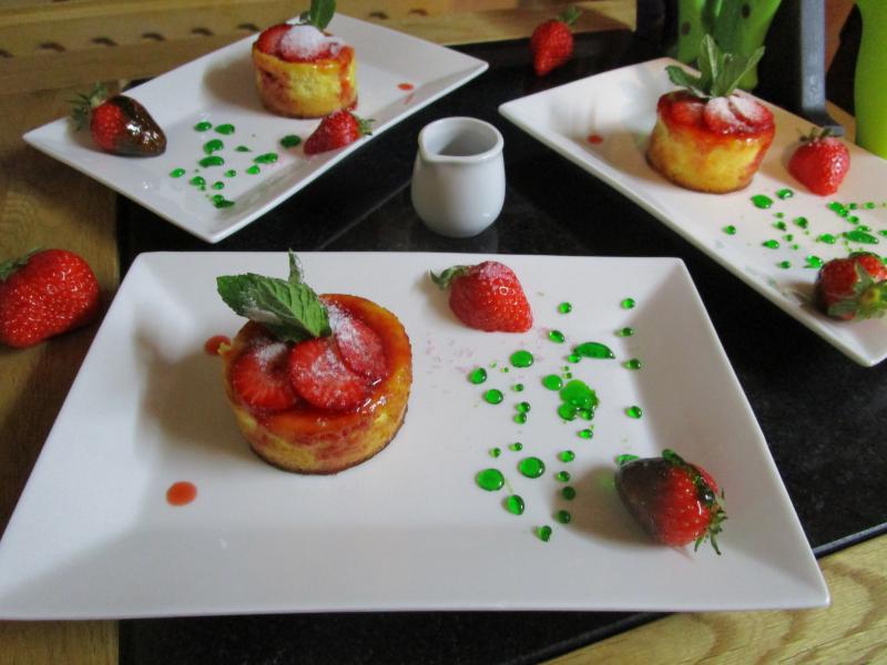 du chocolat blanc rapé ,un oeuf battu, un coulis de caramel à la fraise un peu de déco et voilà le dessert dominical