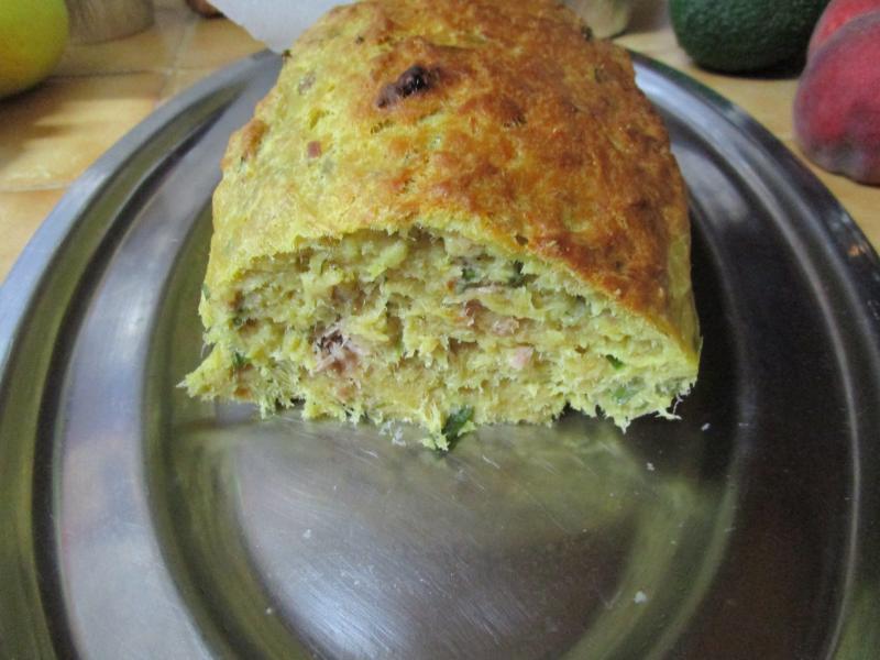 mélanger tous les ingredients et répartir dans un moule à cake, cuire 40 min à 180° s'accompagne d'une mayonnaise au thon ou d'un coulis de tomates au thym