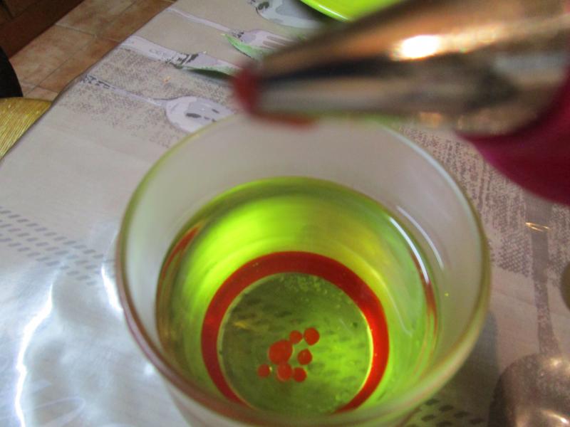 Pour les perles de fraises réalisez un coulis de fraises avec de l'agar agar mettez en pipette et laissez tomber des gouttes de coulis dans un grand verre d'huile bien fraîche ; de petites billes se forment aussitôt