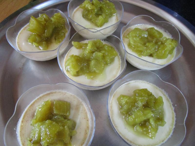 Panna cotta réglisse, compotée de rhubarbe à la verveine