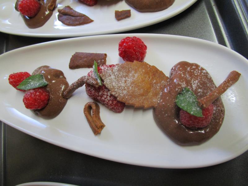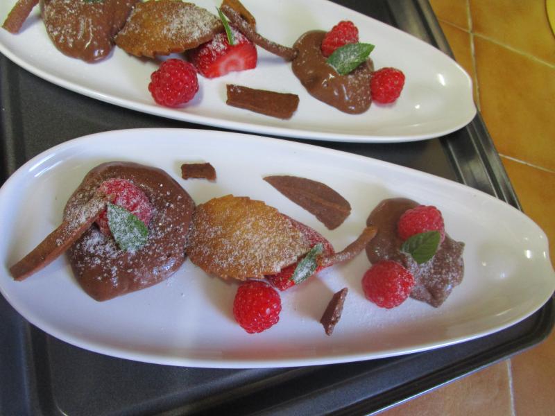 C'est une tarte au chocolat framboises, fraises et menthe qui sort un peu de l'ordinaire
