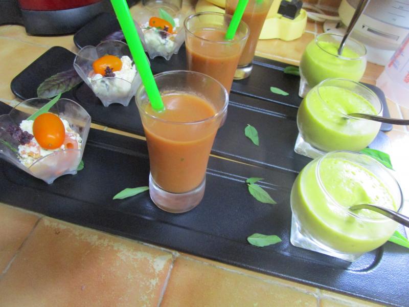 pannacotta fenouil/saumon crème de courgette à la menthe gaspacho Paëlla