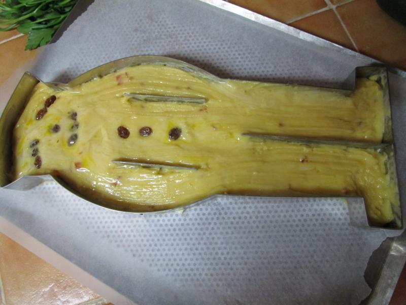 - Mettre en forme le bonhomme, des raisins secs ou des grains de café pour les yeux moi j'ai un moule spécial mais on peut faire sans