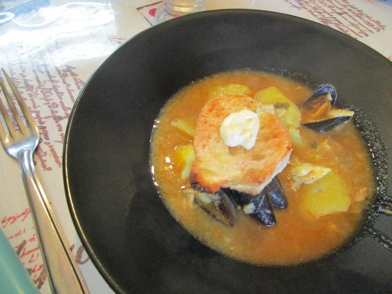 Les poissons frais mijotés longtemps accompagnés de quelques crabes, une rouille bien provençale qui sent bon l'ail sur des tartines grillées on en redemande!