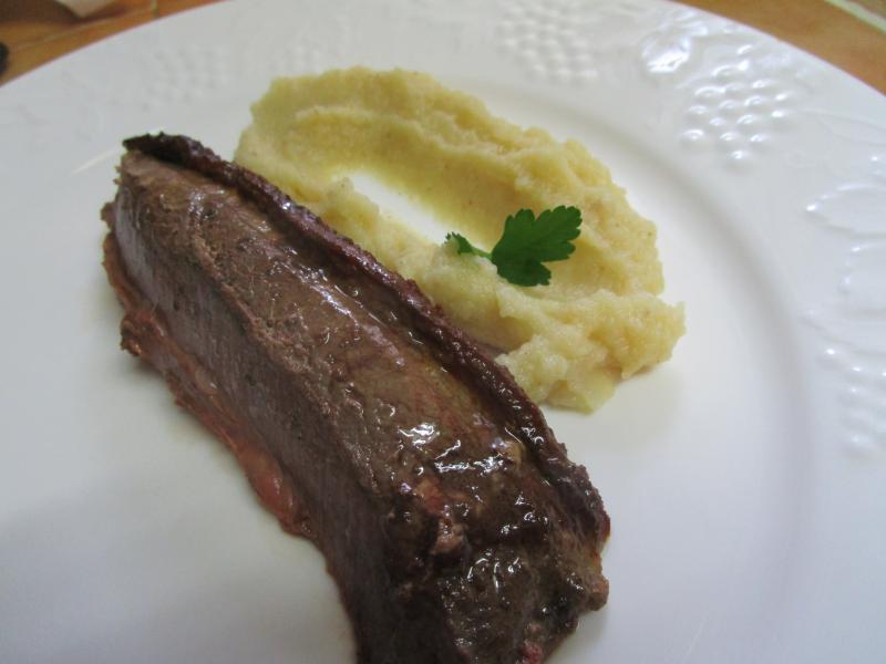 Un beau magret de canard cuit sur la peau avec un écrasé de panais à la vanille et huile d'olive il faut rajouter au panais un peu de chou fleur et une échalote pour une texture moelleuse et pour en souligner le goût
