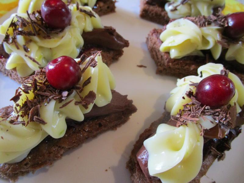Forêt noire vite fait avec quelques griottes sauvages , un coulis gourmand, une ganache guanaja, une ganache ivoire aux zestes de citron vert