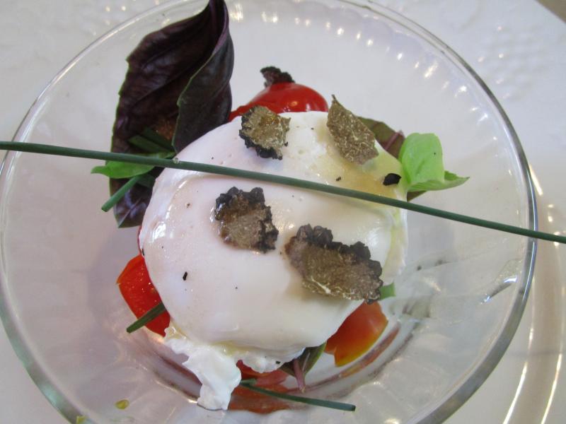 quelques tomates et herbes du jardin pour cet oeuf coulant à la truffe d'été