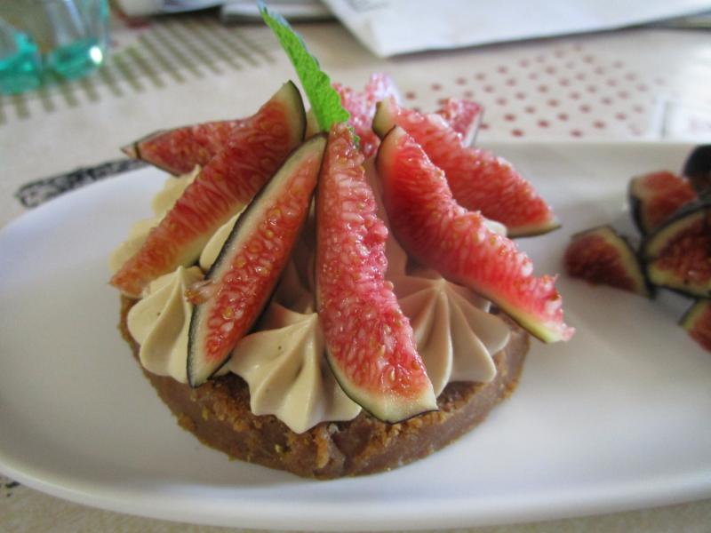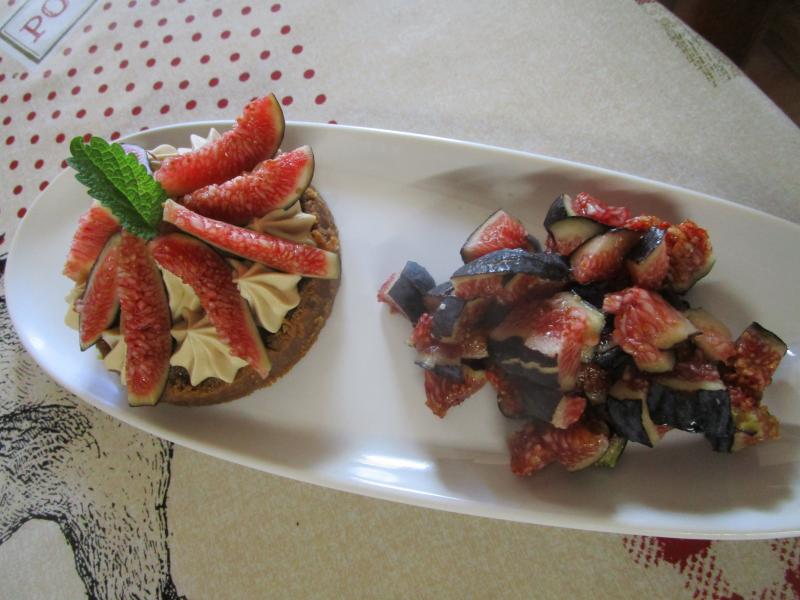 Je continue avec les figues ; une source d'inspiration... profitons en car la saison s'achève En tarte avec une base de speculoos au zestes de citron une ganache montée Orelys et quelque feuilles de mélisse