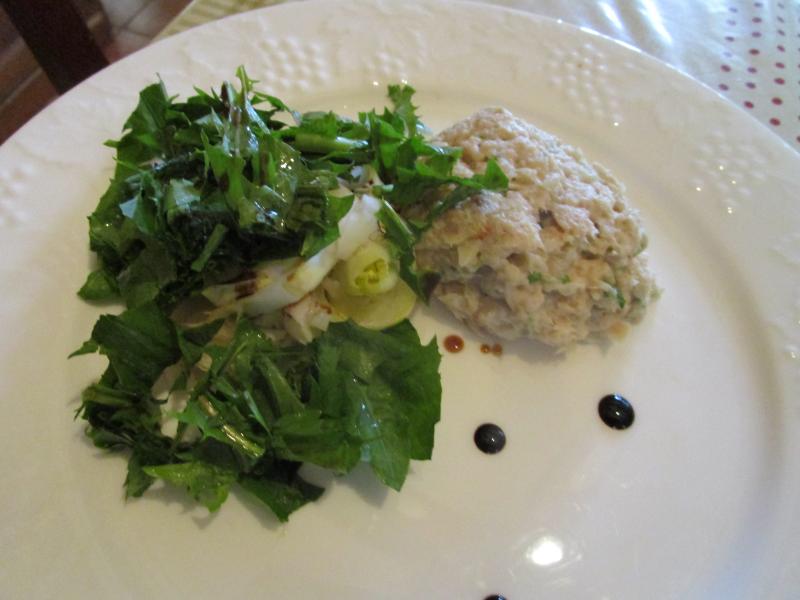 Faites revenir un bulbe de fenouil en morceaux et mixez le avec une tranche de thon mi cuite, 2 cuill. de crème un peu de sel un peu de ciboulette, servez avec une salade d'endives et de pissenlits