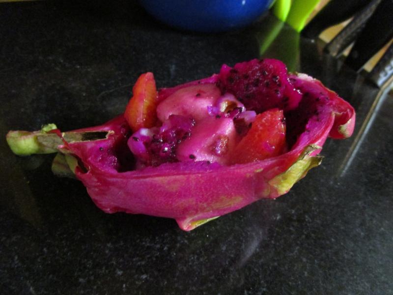 Fruitée la salade de fruits aux fruits de dragon, litchis oranges et pommes à la liqueur de mandarine