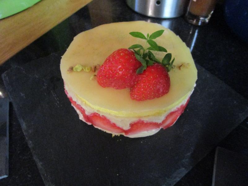 Allez hop un petit fraisier à la verveine fraîche du jardin pour terminer le repas du dimanche!!