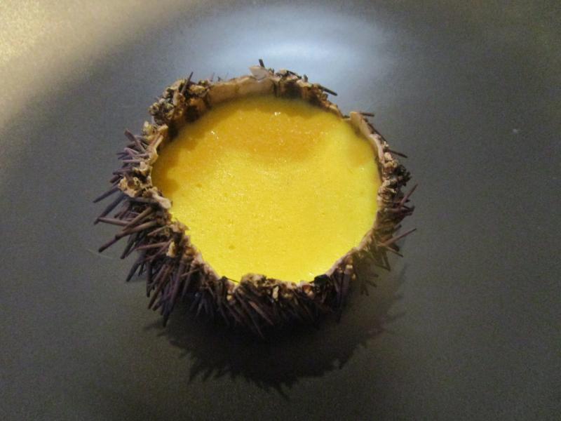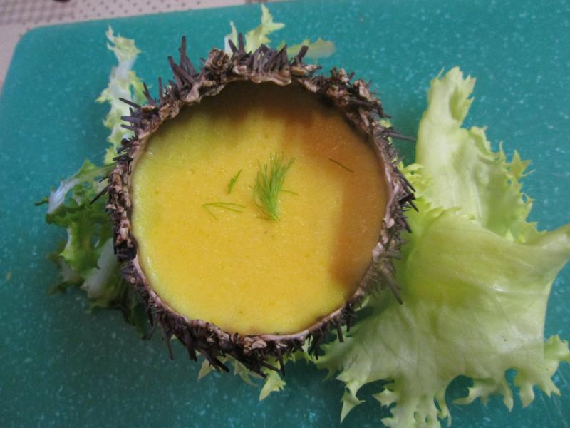 Je priviligie la crème d'oursin au curry et cucurma