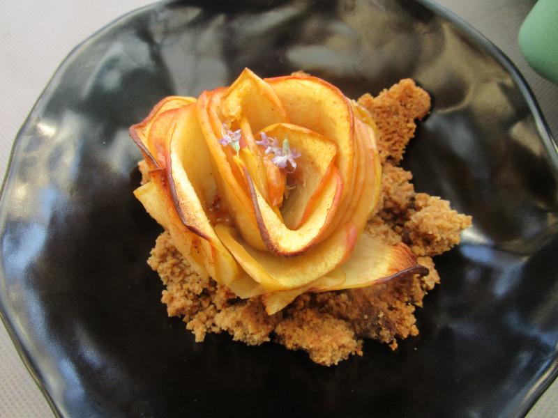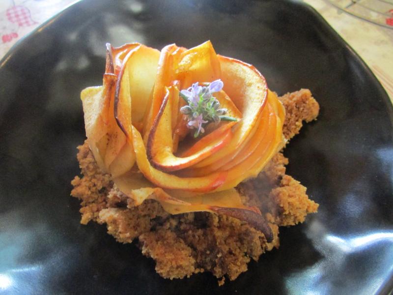 La tarte aux pommes, crème caramel beurre salé au romarin, crumble.