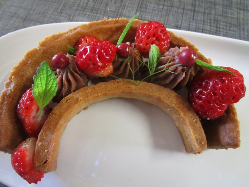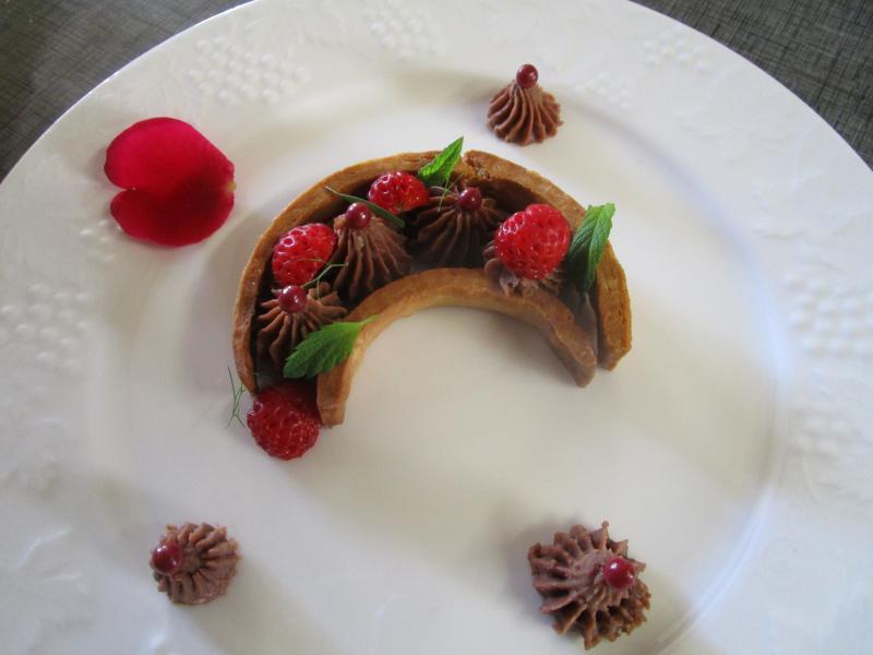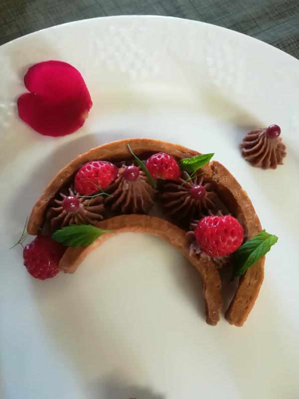 Composée d'une pâte sablée, d'une ganache jivara coco, de quelques herbes parfumées; fenouil,menthe, mélisse, estragon