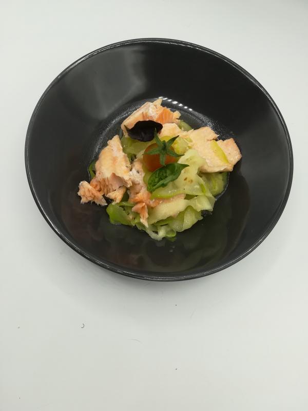 Tagliatelles de courgettes ail et anis vert,filets de truite du Vercors.